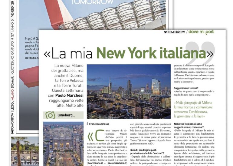 Intervista MI TOMORROW “Fotografando con Paolo Marchesi: “Milano dall’alto è la mia New York” «Cerco sempre di fotografare Milano dall’alto perché è una prospettiva...